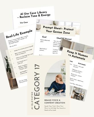 AI Elevated is a premium system for creative business owners who want to scale, streamline, and strengthen every part of their business with AI.It’s a high-impact toolkit for stylists, interior designers and creative entrepreneurs who: